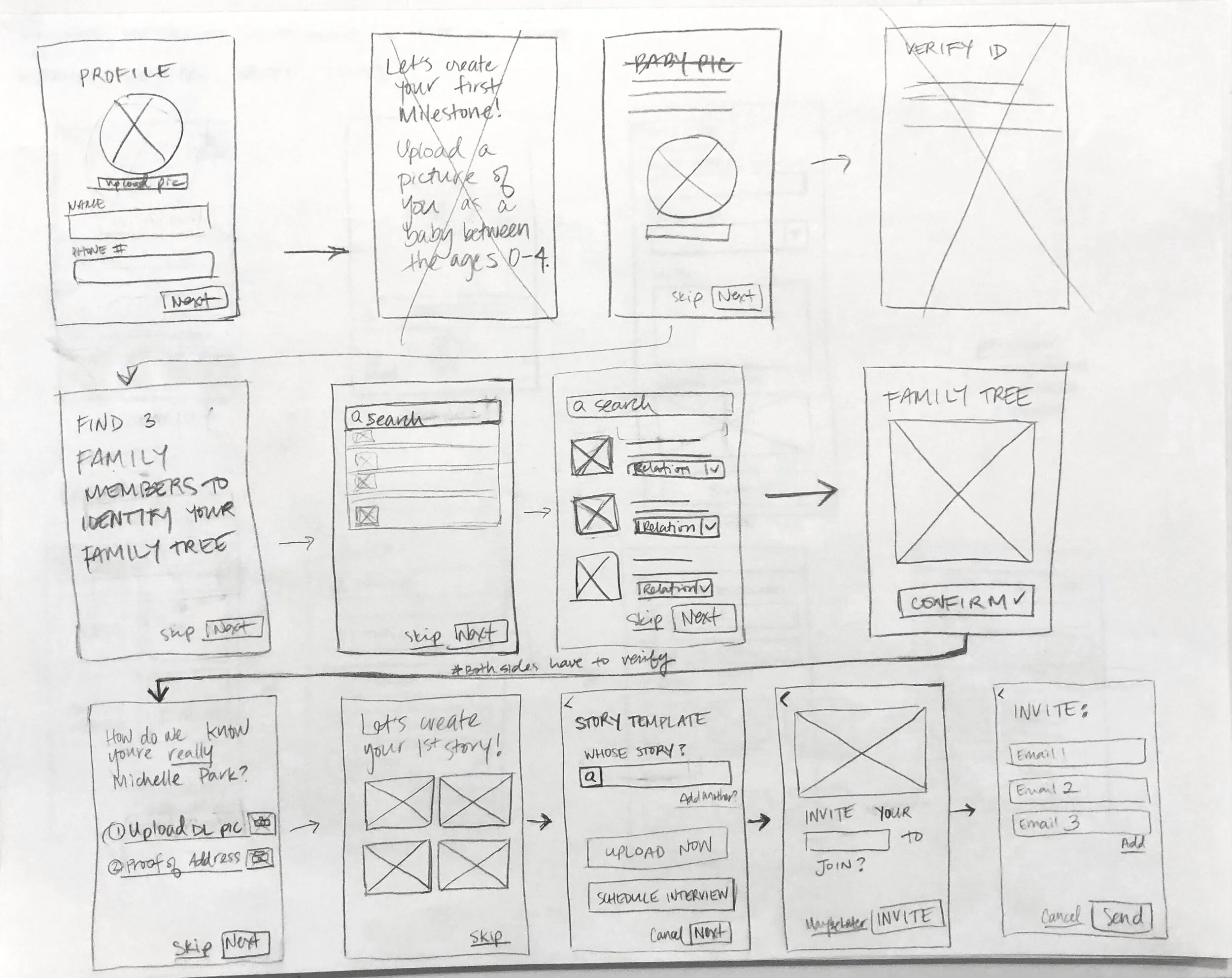 The client came to me with an idea that he had to enter a business venture competition. Currently, there are no platforms in the market that provide an intuitive, safe, and secure space for families to remember, digitally record, write, and share their family-specific stories. Existing platforms and apps are not made specifically for families; therefore, such user groups do not have a viable alternative to use and have large unmet needs. As such, many families lose their unique stories to time, physical distance as members move away, and most, unfortunately, death.